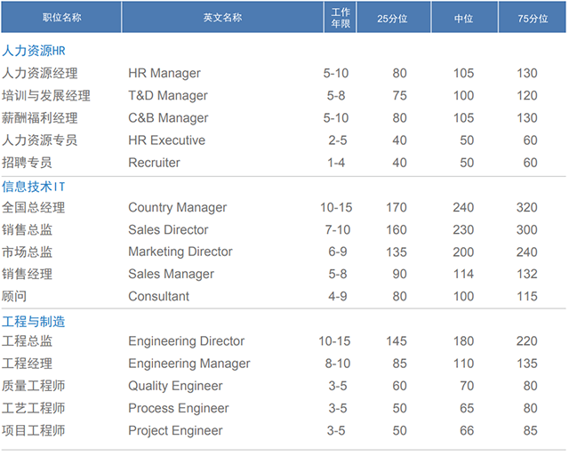 25分位值:表示有25%的数据小于此数值,反映科猎头公司锐国际信息库的较低端水平